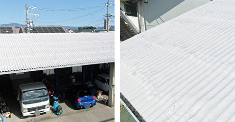 そこで、防水・修繕・補強・断熱の機能を兼ね備えた「アクアハジクン」をご提案。施工後は劣化部分がしっかり補修・保護され、防水性能が向上。あわせて断熱効果により屋根からの熱の侵入が軽減され、作業環境の改善にもつながりました。