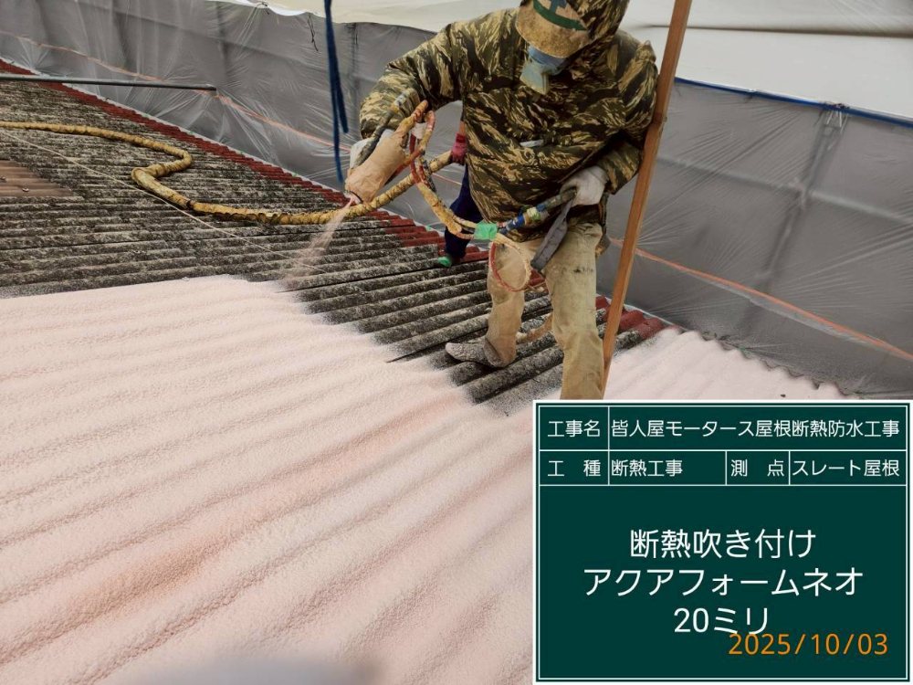 屋根吹付断熱防水:アクアハジクン 断熱仕様 断熱材:アクアフォームNEO メーカー:日本アクア |